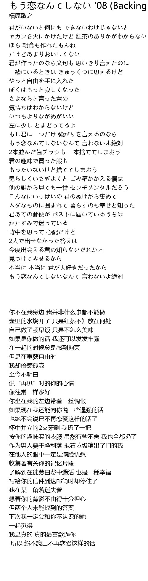 | [03:58.97] | もう恋なんてしないなんて 言わないよ絶対 |