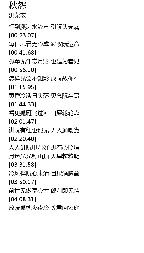 | [04:10.10] | 放阮孤枕夜夜冷 等君回家庭 |