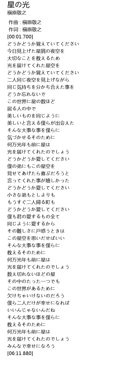 | [00:00.00] | 作曲 : 槇原敬之 |