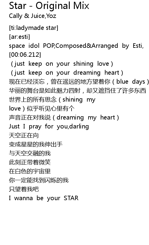 | [00:03.353] | space idol POP,Composed&Arranged by Esti, |
