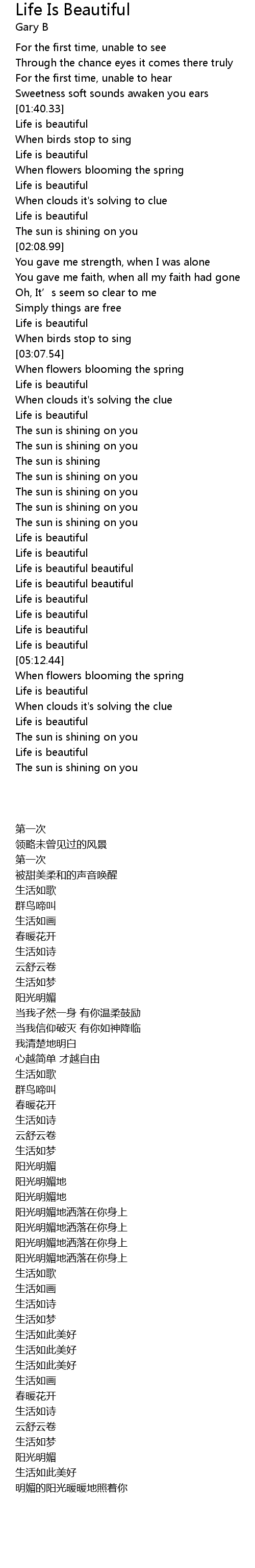 | [04:44.49] | Life is beautiful beautiful |