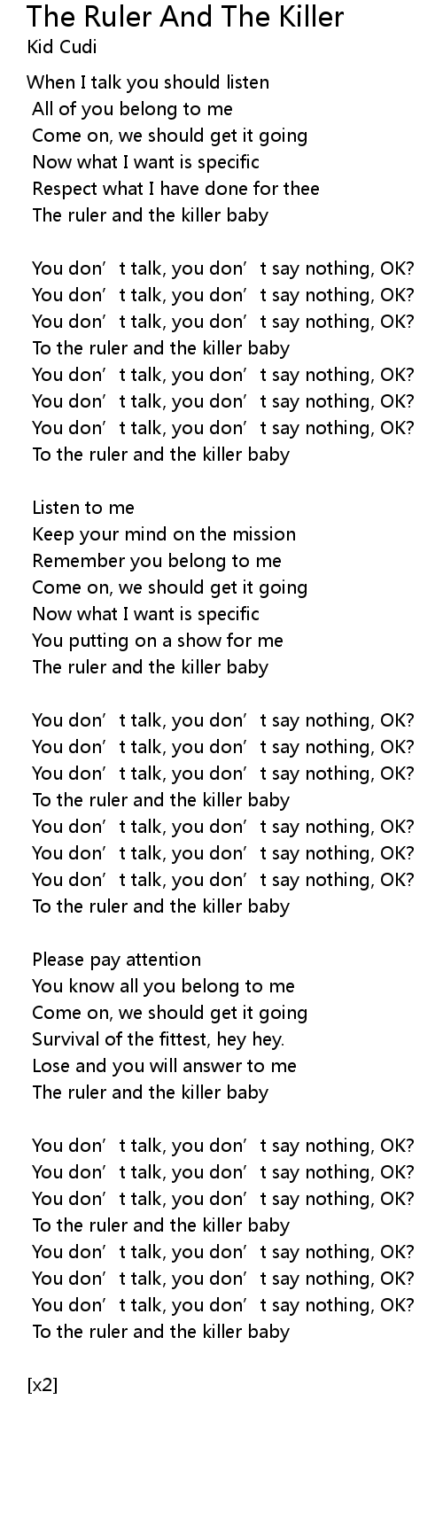 | Song | The Ruler And The Killer |