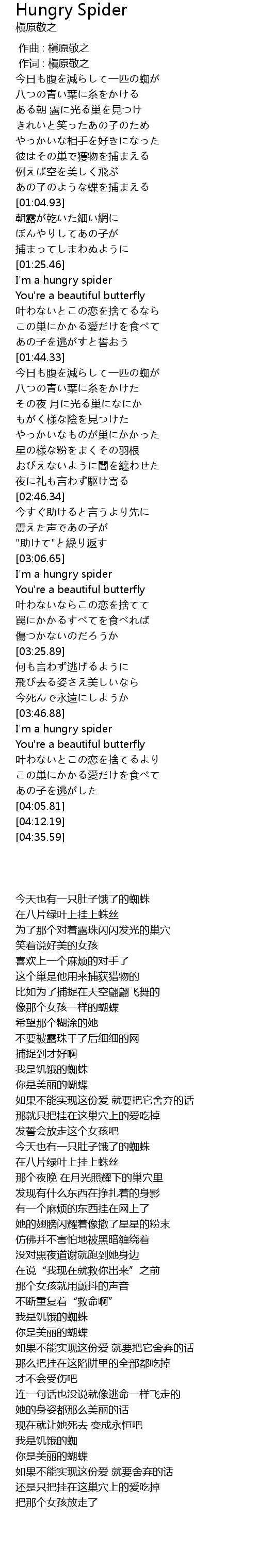 | [02:09.47] | 今日も腹を減らして一匹の蜘が |