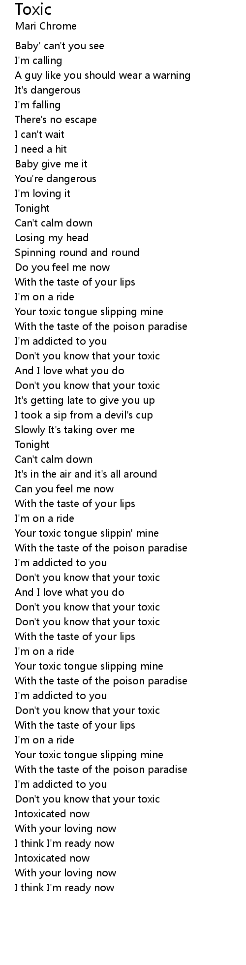 Don't you know that your toxic |