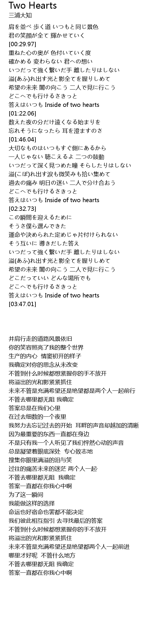 | [03:36.67] | 答えはいつも Inside of two hearts |