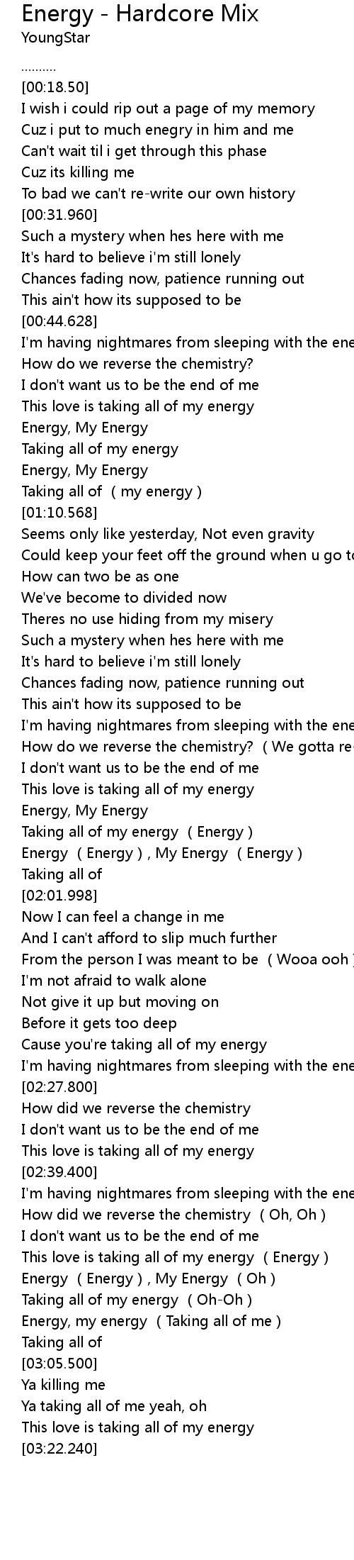 | [03:00.890] | Energy, my energy (Taking all of me) |