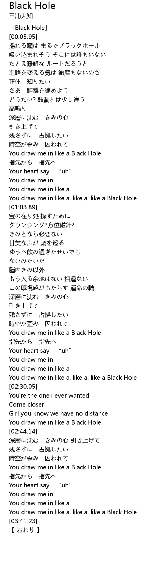 | [03:36.28] | You draw me in like a, like a, like a Black Hole |