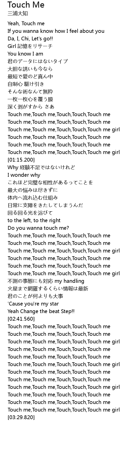 | [01:09.260] | Touch me,Touch me,Touch,Touch,Touch me |