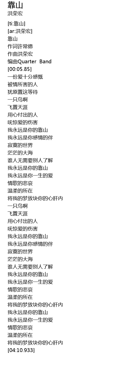 | [01:35.182] | wǒ yǒng yuǎn shì nǐ de kào shān |