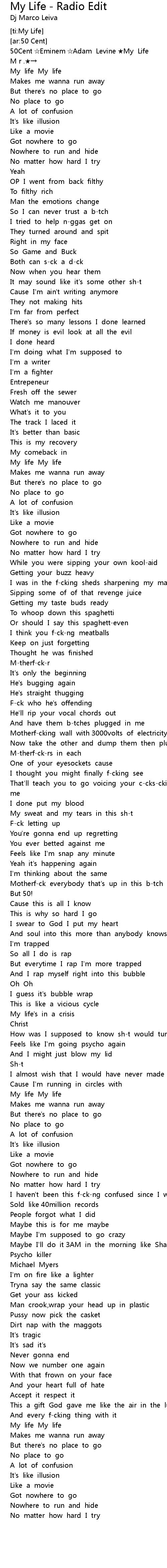 | [00:00.722] | 50Cent Eminem Adam Levine My Life |