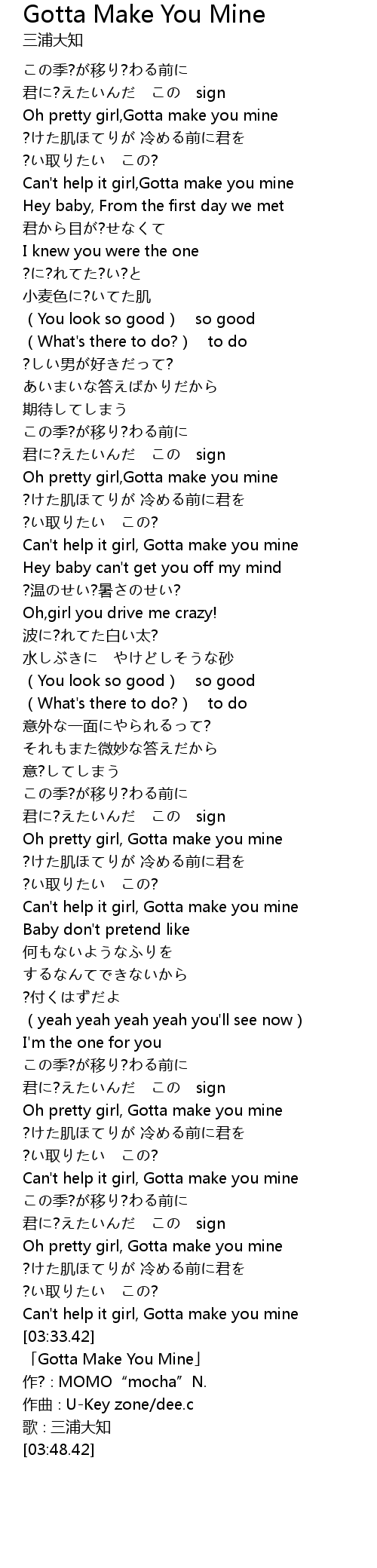 | [03:36.42] | 「Gotta Make You Mine」 |