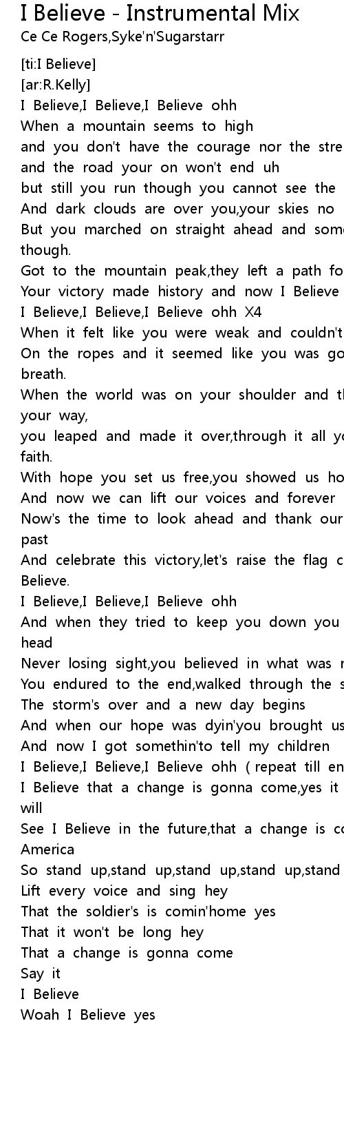 | [03:11.483] | I Believe, I Believe, I Believe ohh repeat till end |