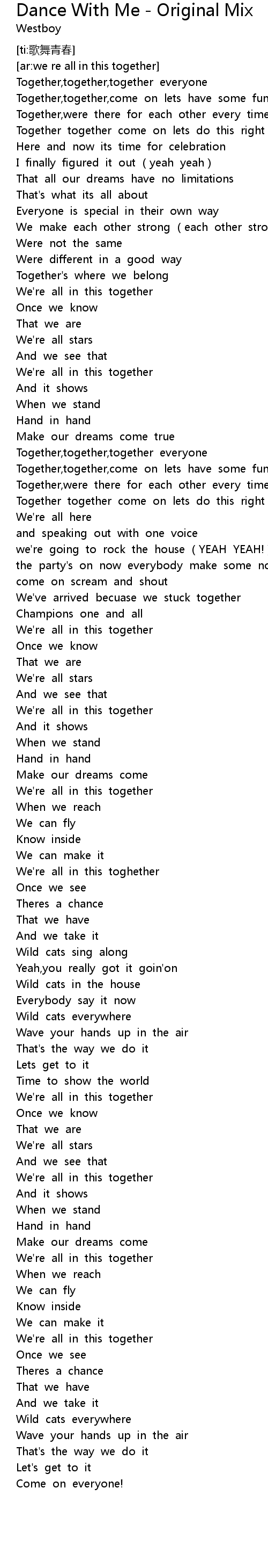 | [01:20.540] | Together,together,together everyone |
