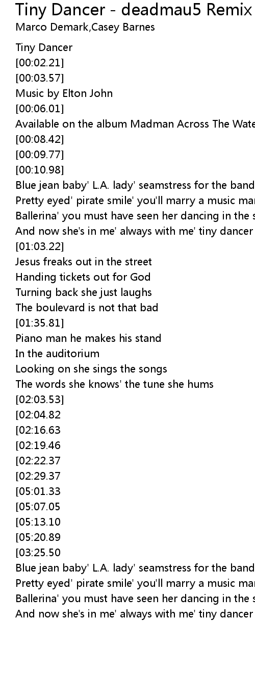 And now she's in me' always with me' tiny dancer in my hand |