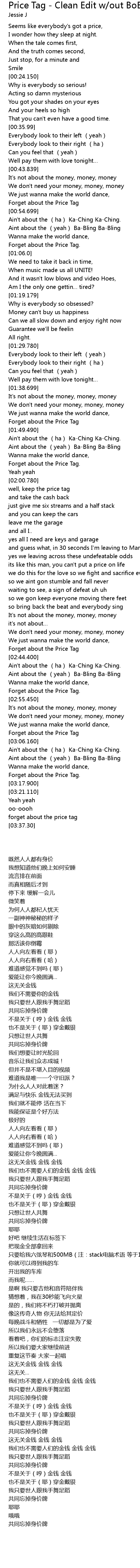 | Song | Price Tag - Clean Edit w/out BoB |