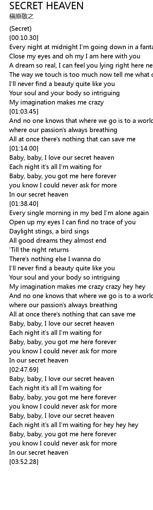 Baby, baby, I love our secret heaven |