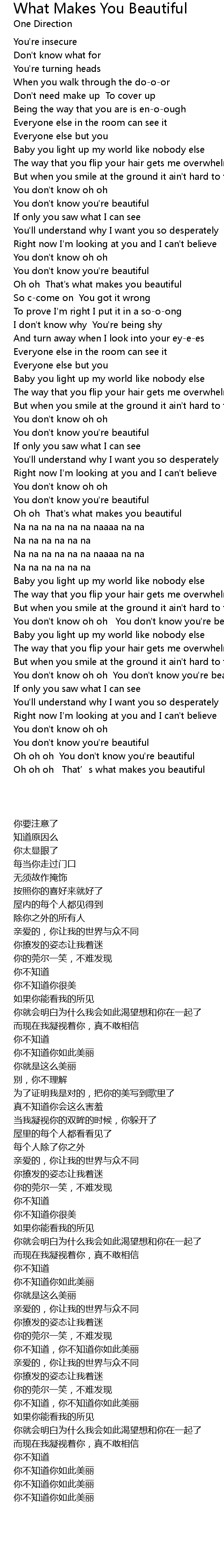 | [03:11.900] | Oh oh oh That' s what makes you beautiful |