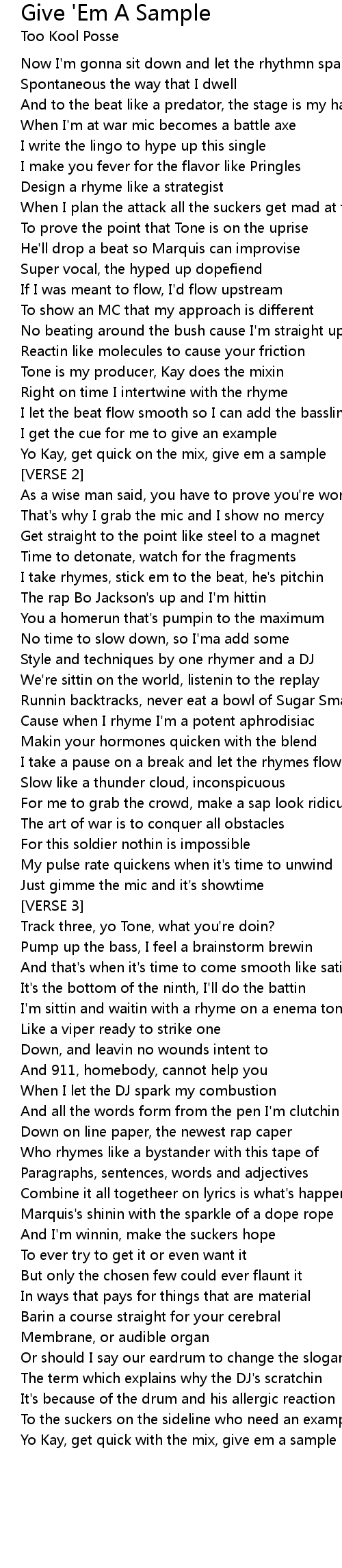 Now I'm gonna sit down and let the rhythmn spark a brain cell |
