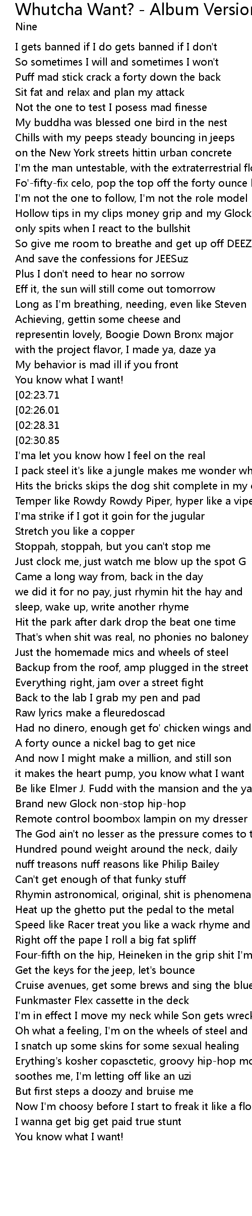 (Whutcha want Nine?) Fat beats for my rhymes |