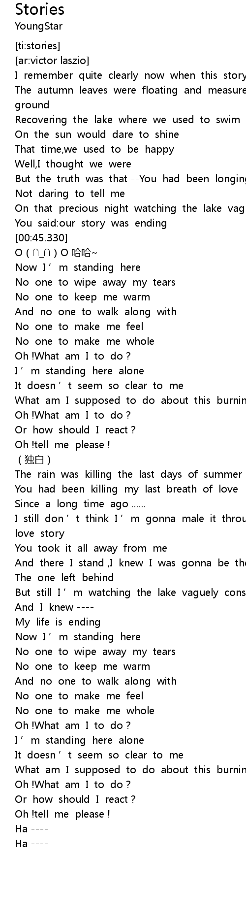 | [00:25.830] | But the truth was that --You had been longing to leave me |
