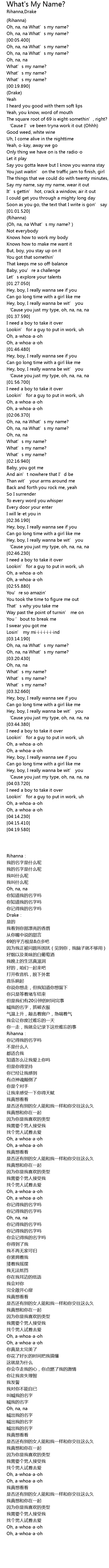 | [03:15.200] | Oh, na, na What' s my name? |