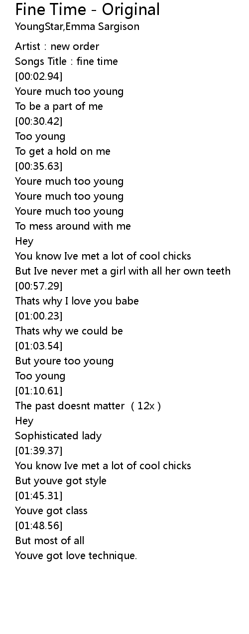 | [01:41.31] | You know Ive met a lot of cool chicks |