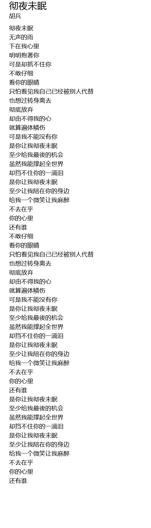 | [00:00.16] | 彻夜未眠 |