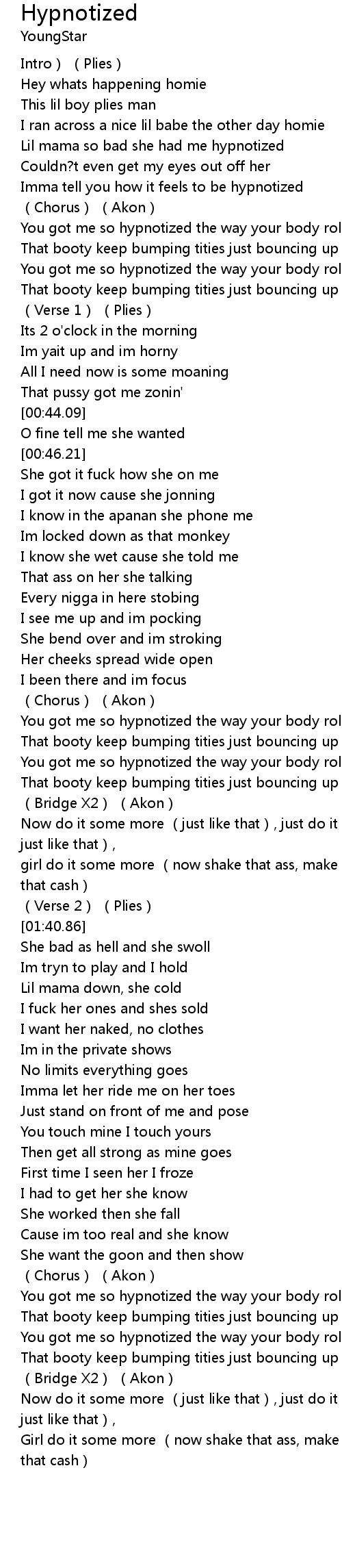 | [02:22.44] | You got me so hypnotized the way your body rolling round and round |