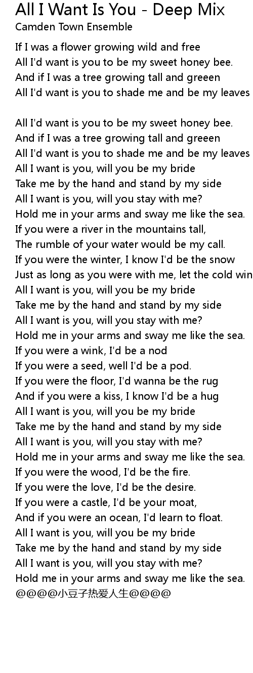 | Song | All I Want Is You - Deep Mix |