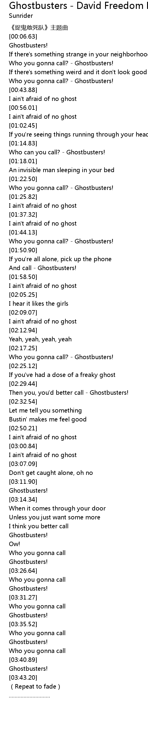 | [00:33.62] | Who you gonna call? - Ghostbusters! |