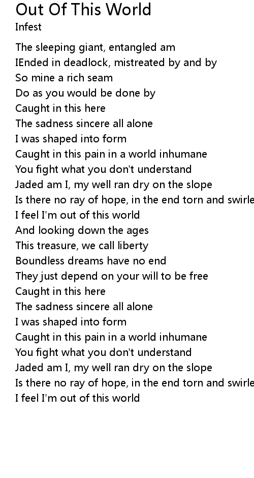I feel I'm out of this world |