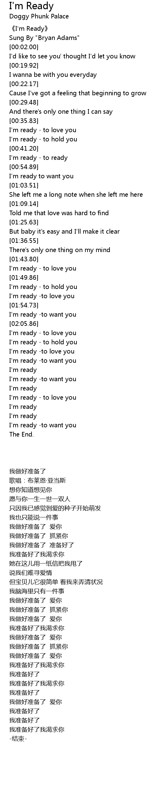 | [00:54.01] | I'm ready - to ready |
