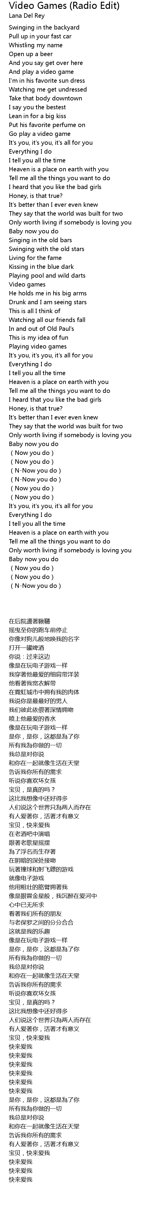 | Song | Video Games (Radio Edit) |