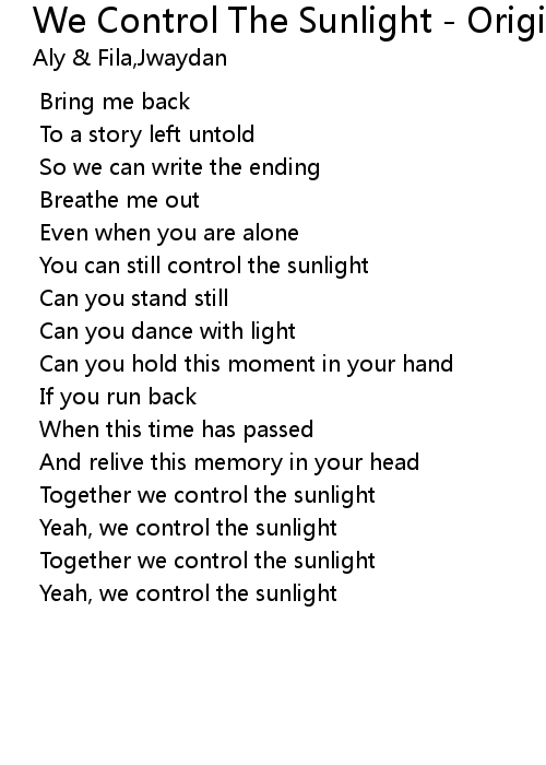 Yeah, we control the sunlight |