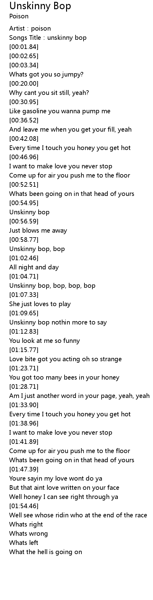 | [01:05.65] | Unskinny bop, bop, bop, bop |