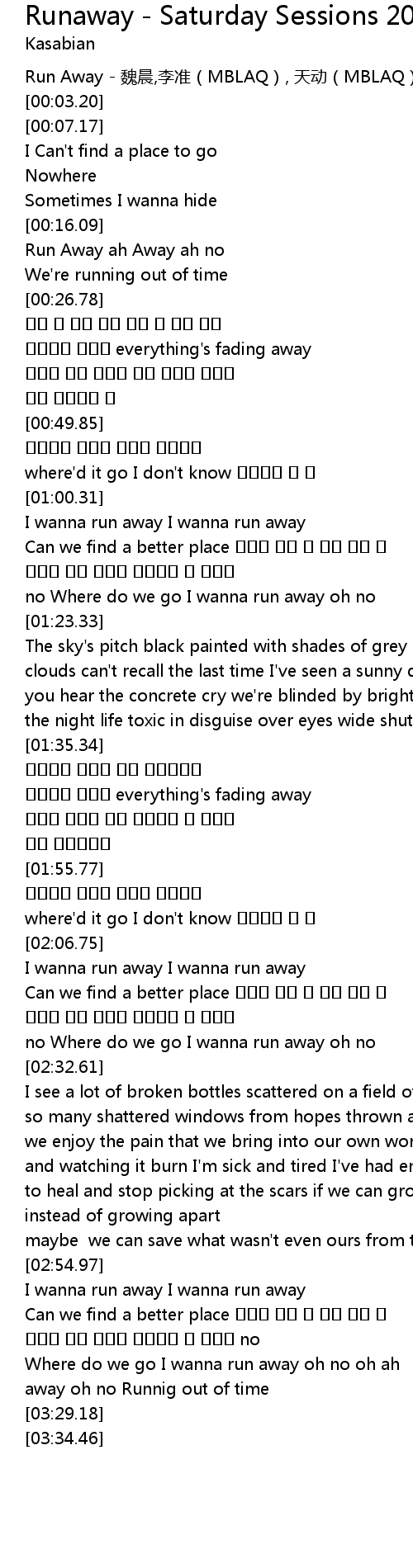 | [00:00.82] | Run Away wei chen, li zhun MBLAQ, tian dong MBLAQ |