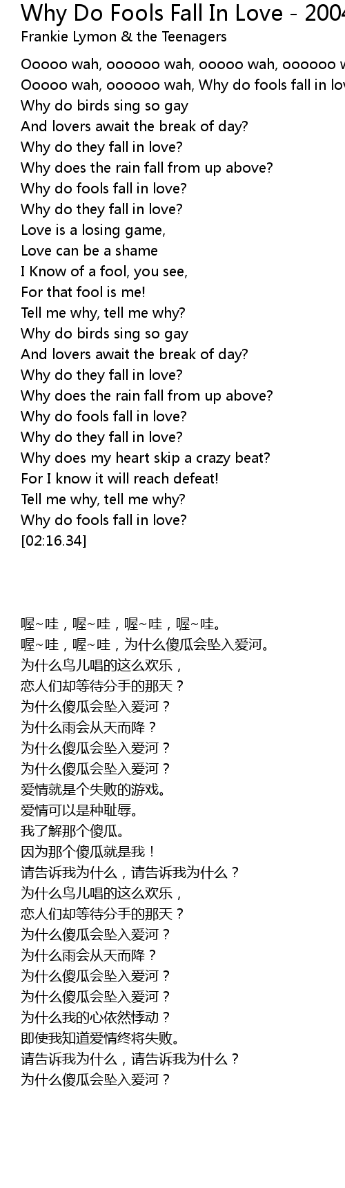 Ooooo wah, oooooo wah, Why do fools fall in love |