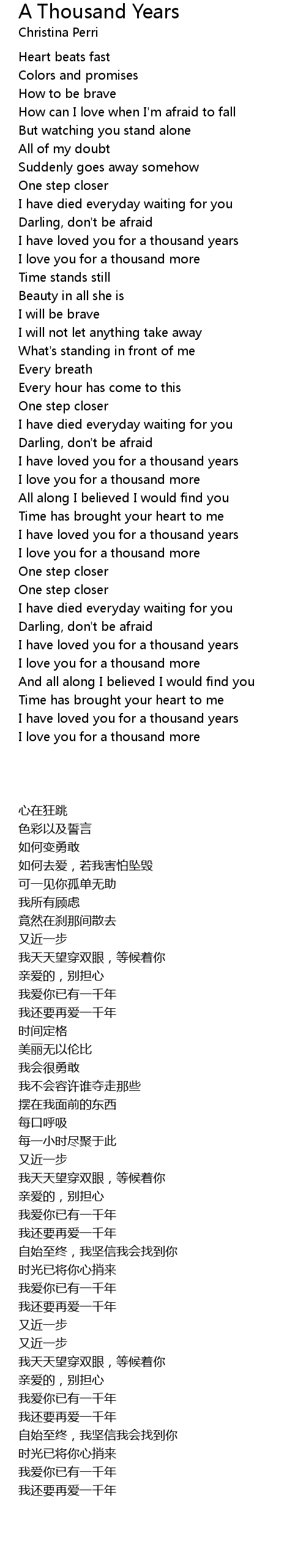 I have loved you for a thousand years |