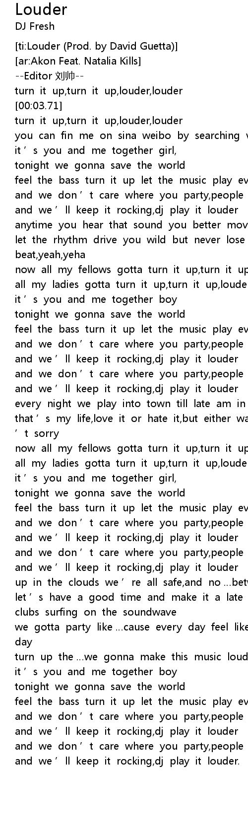 | [00:01.10] | turn it up, turn it up, louder, louder |
