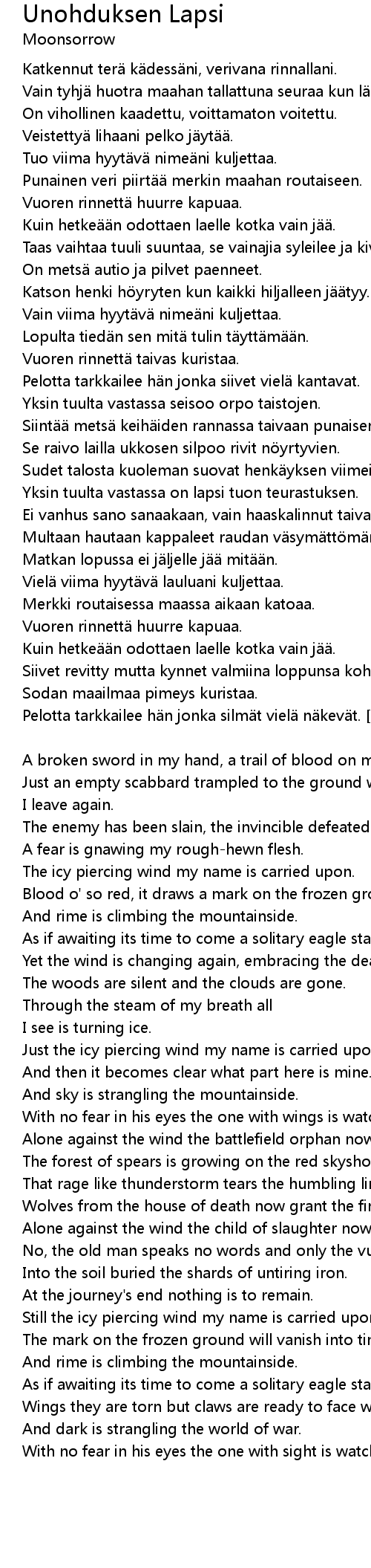 | Song | Unohduksen Lapsi |