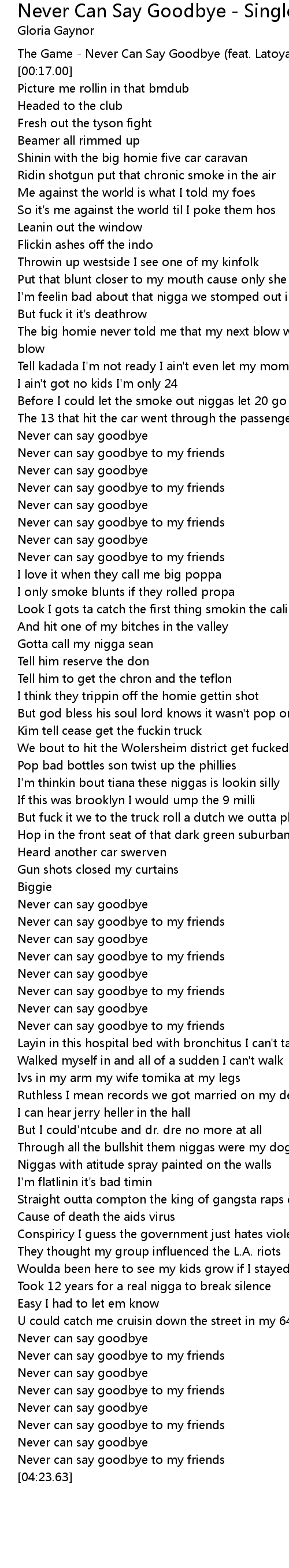 The Game - Never Can Say Goodbye (feat. Latoya Williams) |