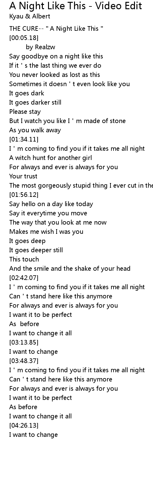 | [00:02.53] | THE CURE--"A Night Like This" |