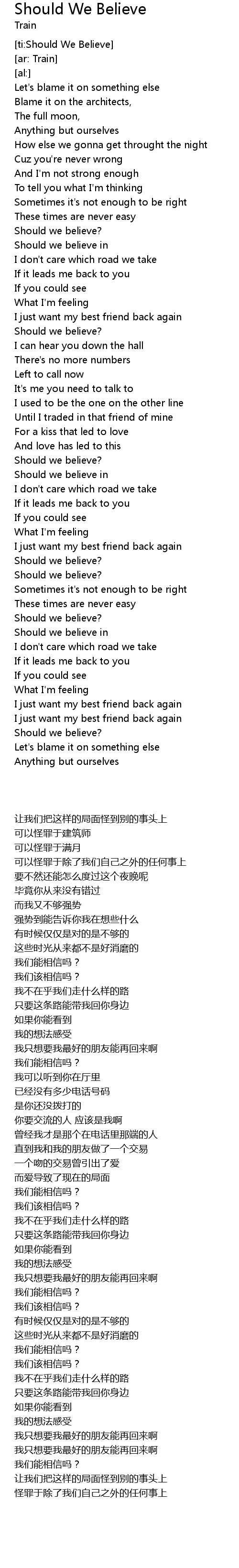 [ti:Should We Believe] |