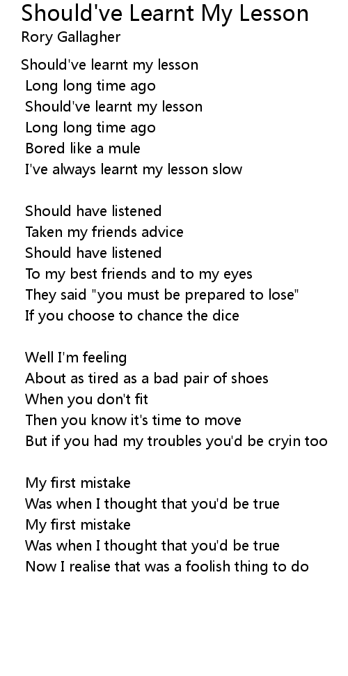 Should've learnt my lesson |