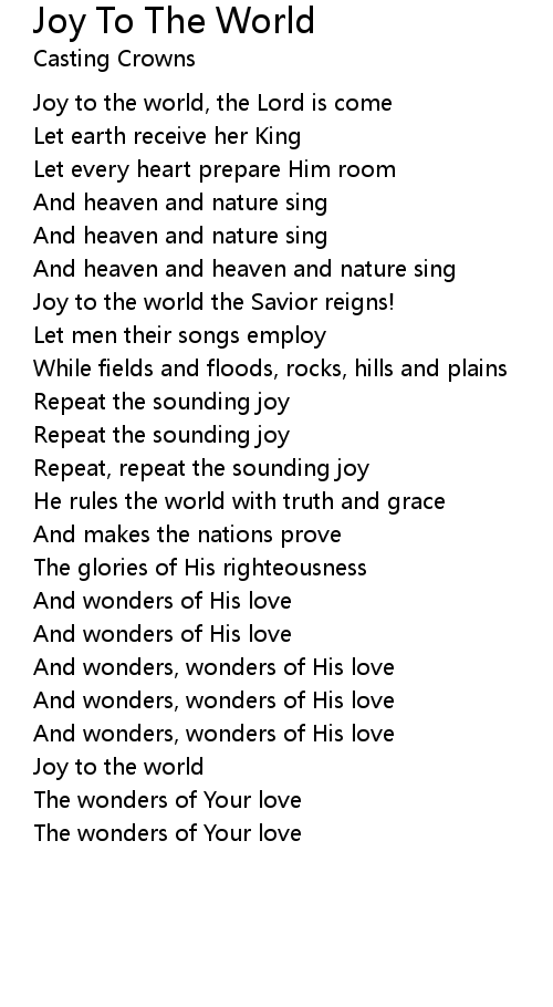 Joy to the world, the Lord is come |