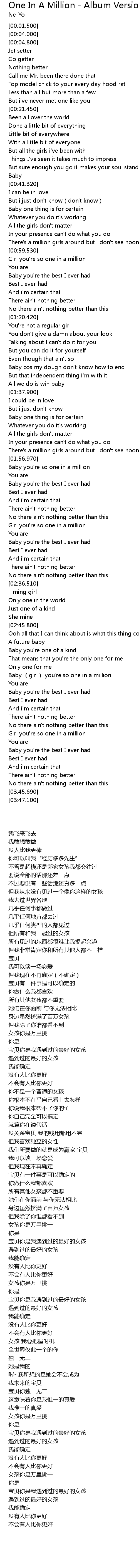 | [03:03.920] | Baby girl you' re so one in a million |