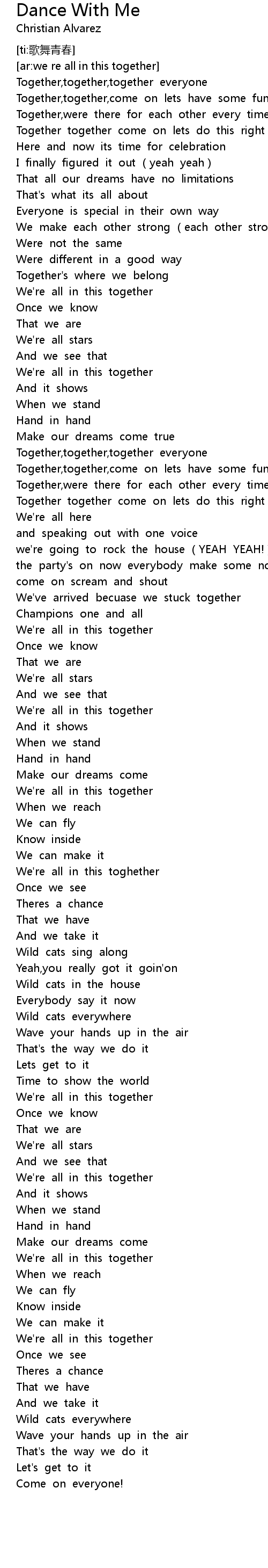 | [03:24.452] | We' re all in this together |