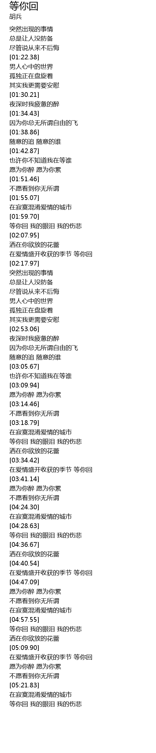 | [04:58.21] | 等你回 我的眼泪 我的伤悲 |