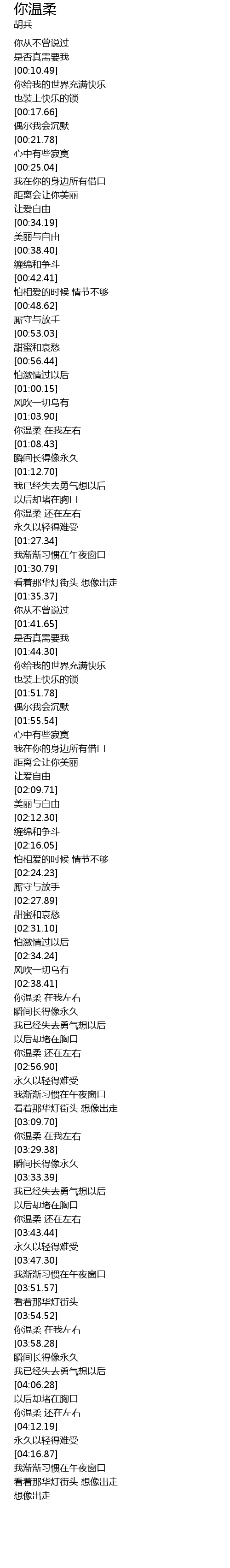 | [03:55.74] | ni wen rou zai wo zuo you |