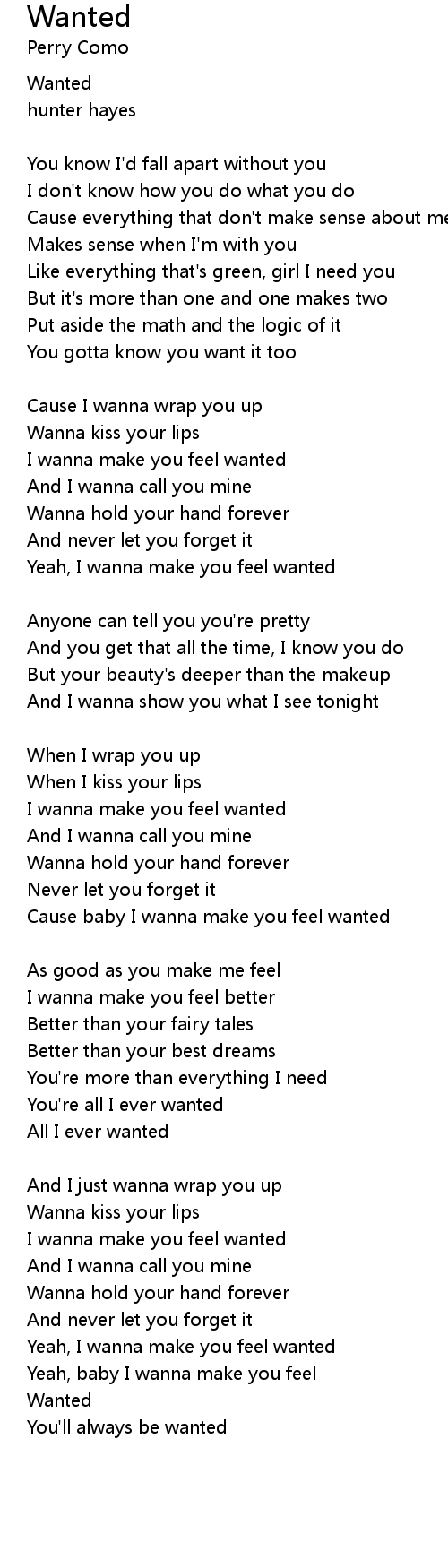 Cause baby I wanna make you feel wanted |